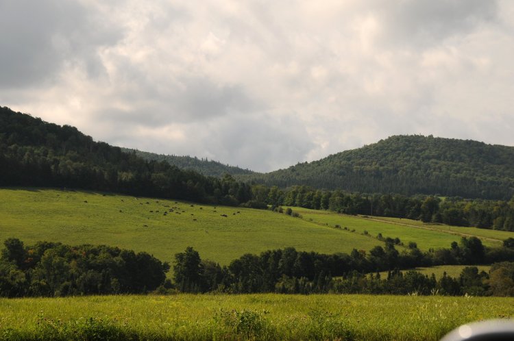 A little bit further on our journey as we passed from New Hampshire into Vermont the countryside took on a different look. New Hampshire's mountains are a bit stark and steep with a lot of rock, but as you move into Vermont, the open fields become a bit more customary with lots of soft rolling hills. You can see the field of gold (goldenrod) in this picture.
