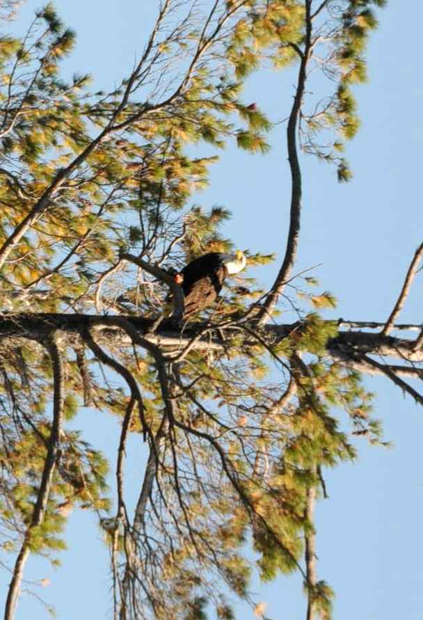 Remember that flying bird?  Squam is a natural habitat for the American Bald Eagle.  What a treat it was for us to see this majestic bird flying about the lake and finally landing in one of the trees.  I had never seen a Bald Eagle, so this was an exciting first for me.