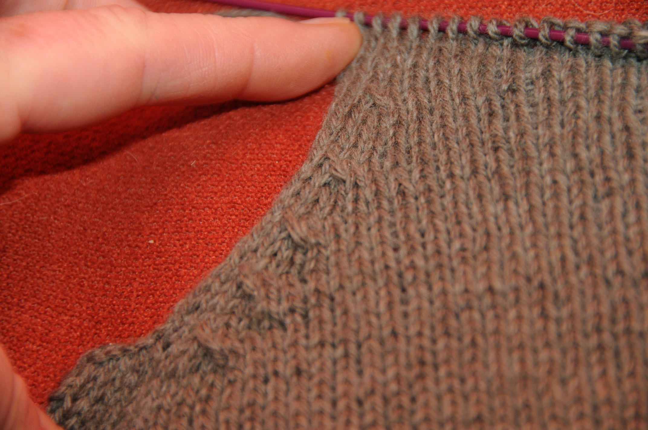 I love the way Carol set up the decreases around the arms.  It's a bit fiddly using a cable needle, but I love the way it looks, especially on a plain knit sweater done in a solid colorway.