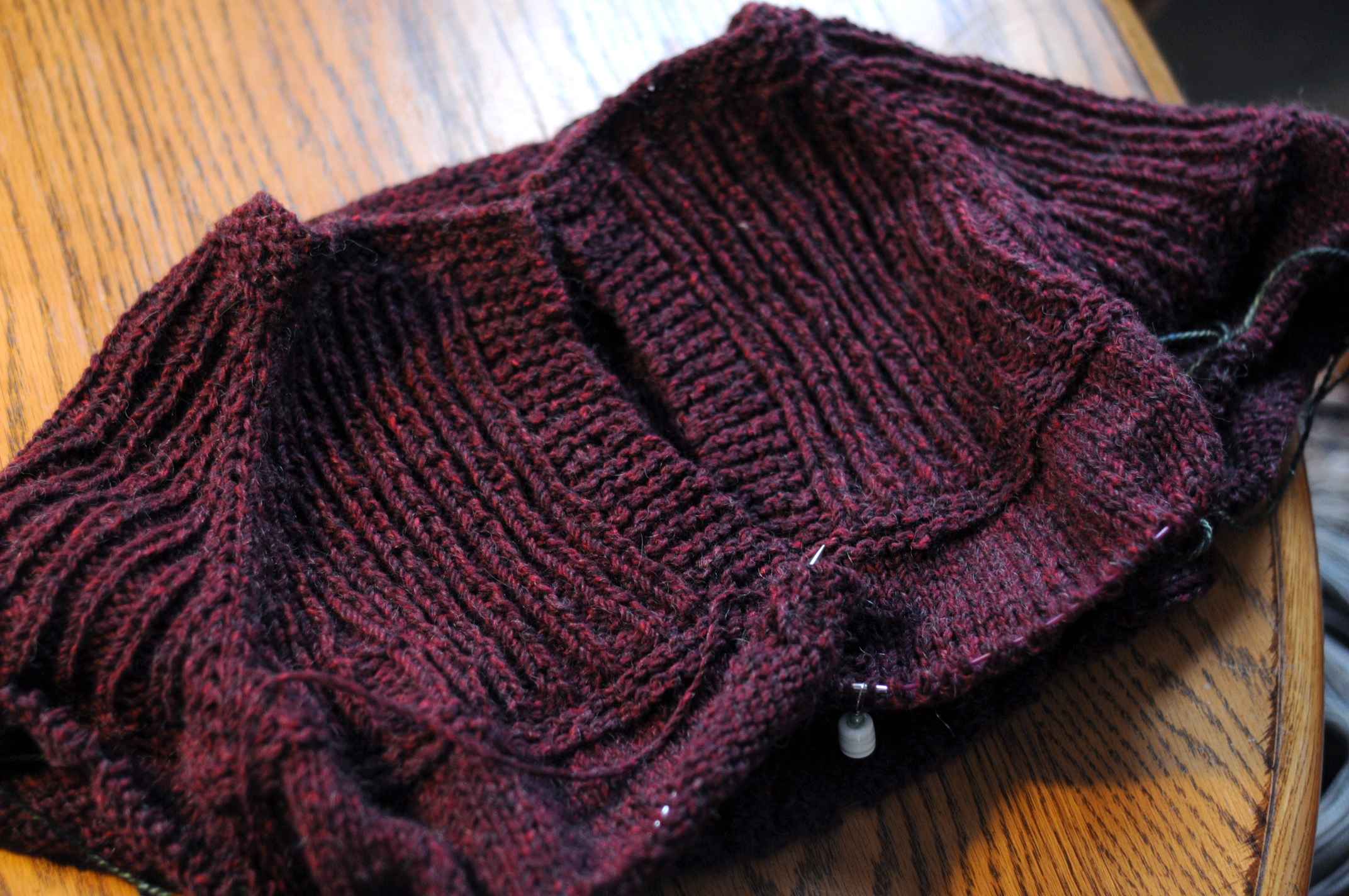 I’ve been waiting patiently to see Beetrice! She already has such character. I love her. The sweater is going to be awesome. You figure out the heel of that sock, and then tell us what you did! I always love the ones who go before and pave the way! I’ll follow you!