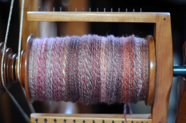 I have learned the hard way that wine and lace do not make good companions…..just sayin'.  Last night I plied the BFL singles that I had been spinning over the last few weeks….