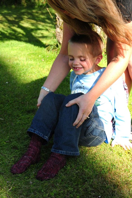 Getting him to sit still long enough to get a picture of his socks was no easy feat (no pun intended)…..just ask his Mum.