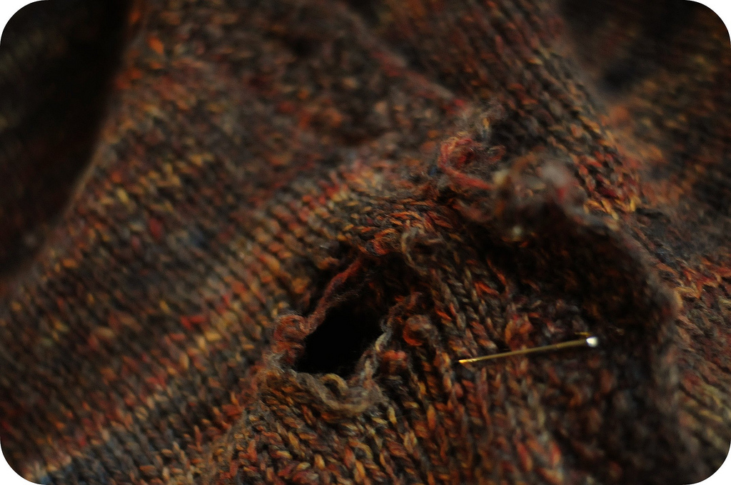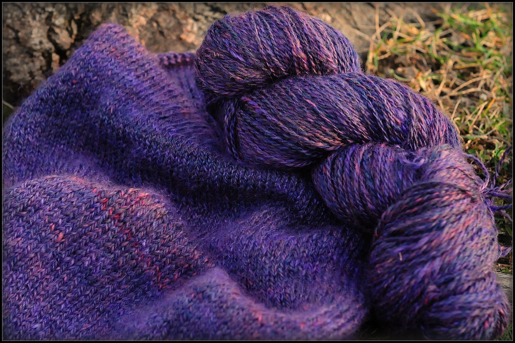 The purple yarn is beautiful! And your vest is great, too. Sad that it’s got a hole but how nice that you got a lot of wear from it.